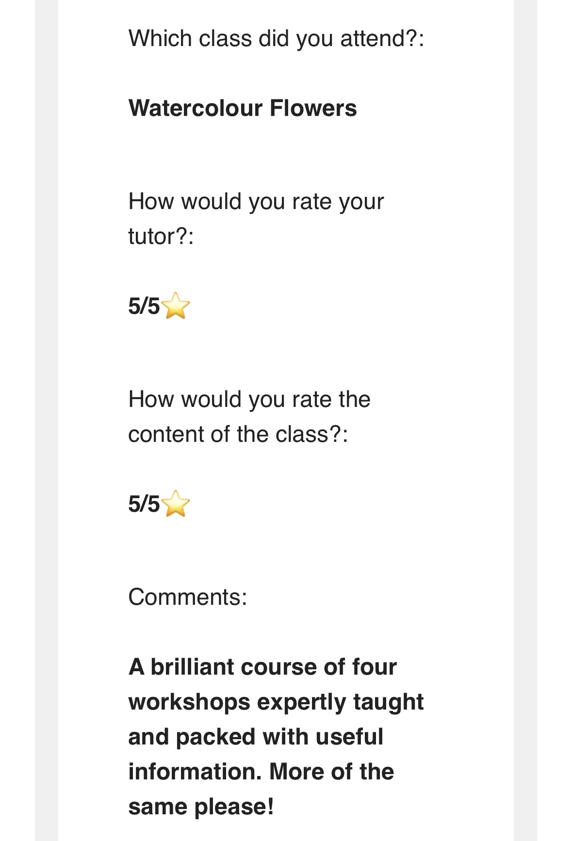 November 9 – 30 2025 Painting Flowers in Watercolour – a four week online class through Ardington Crafts FULLY BOOKED
